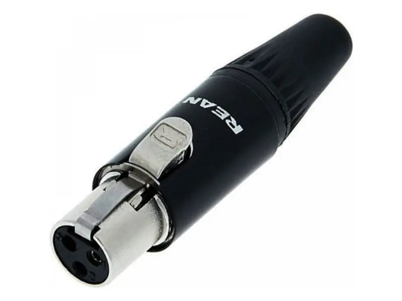 Mini XLR samice, 3pin, zlacené kontakty, kovové tělo. Pro kabel od2.0mm do 4.5 mm.