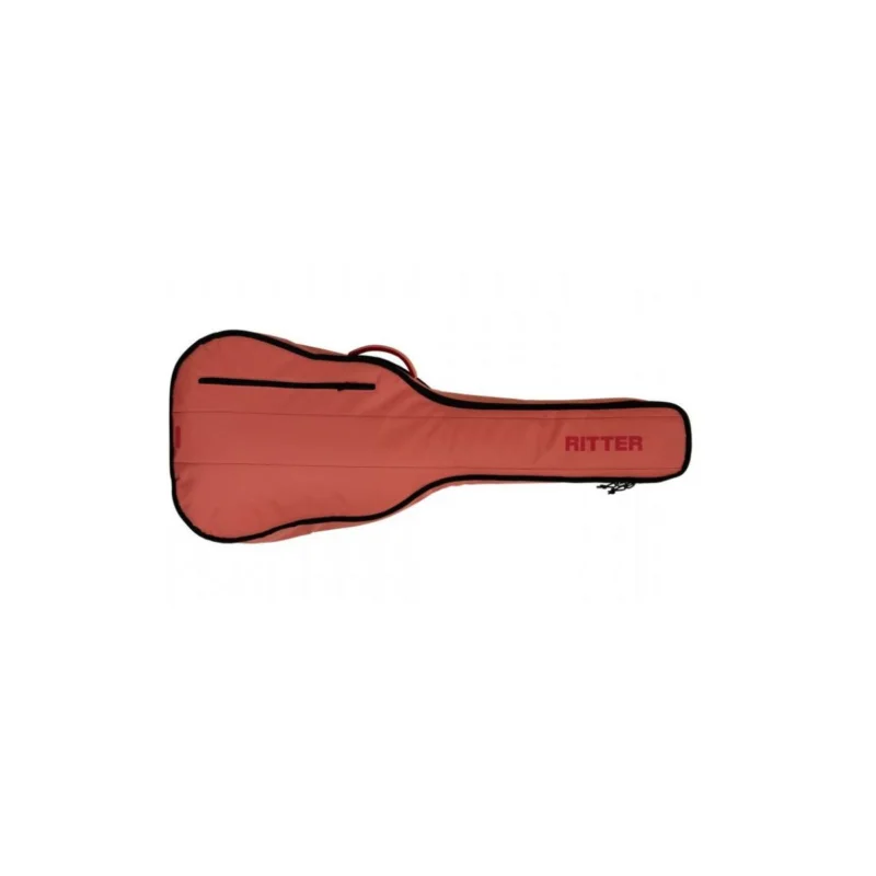 Ritter RGE1-D/FRO je obal na akustickou kytaru, určený pro nástroje typu Dreadnought, popřípadě ostatní kytary obdobných rozměrů. Řadí se do série Evilard, která nabízí základní obaly, které sází na jednoduchý design, kvalitní zpracování a dostatečnou ochranu. RGE1 je vyroben z kvalitního nylonu 600x600D, přední a zadní strana jsou vybaveny 13 mm polstrováním, obvod je chráněn 10 mm polstrem s vysokou hustotou. Vnitřní konstrukce je vybavena podšívkou, ochranou kobylky a dvojitou ochranou pro hlavu nástroje. Otevírání a zavírání zajišťují dvoucestné zipy č.8, pevnost nadále zvyšuje obšití černou nití a svislé prošití. Velká přední A4 kapsa umožňuje snadnou přepravu not a příslušenství spolu s nástrojem. Přenos usnadňuje polstrované boční madlo a nastavitelné zádové popruhy. Obal je vyroben v barvě Flamingo Rose.