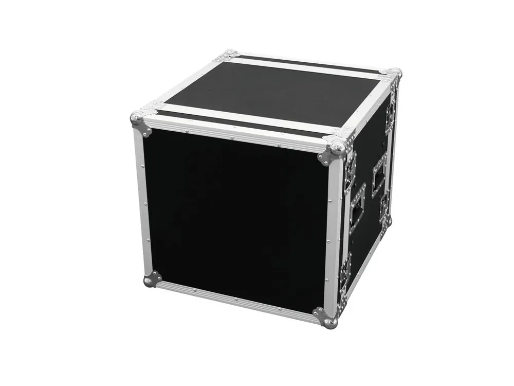 Profesionální zesilovačový rack, 10HE, 19 -odolný proti otřesům. Profilové kolejničky pro připevnění 10 19HE-zesilovače PA, přídavná vybavení atd. 2 snímatelné kryty-dvoudvéřová verze. Dveře jsou vybaveny vycpávkou (pěna-25 mm) kvůli pádům a nárazům během transportu. Maximální hloubka: za předním panelem-420 mm/v předním panelu-90 mm. Kvalitní dřevěné zpracování (9 mm) s černým laminováním. Hliníkové profilové rámy (30 mm) se zaoblenými okraji. Trojnožka, ochranné ocelové zakulacené rohy střední velikosti. 4 kvalitní uzamykatelné motýlkové zámky. 2 dřevěné kluzné kolejnice na spodní části.2 odklápěcí držadla z pochromovaného plechu. Balení obsahuje připevňovací šrouby. K dostání v různých výškových jednotkách (1 jednotka = 44 mm).