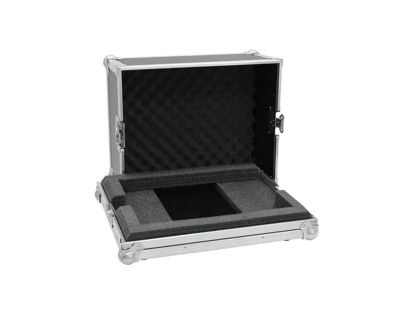 Fitted for 2 devices and accessory Additional accessory compartment Interior upholstered with foam High-quality workmanship with 7 mm birch multiplex, dark brown laminated Aluminum profile frames (25 mm) with rounded edges Three-leg, big steel ball corners Lid with 2x tip-over locks 4 x castors (100 mm), 2 of which with locking brakes 2 x chrome butterfly locks 2 x chrome case handles 4 x stacking dishes for stacking the cases Made in Europe