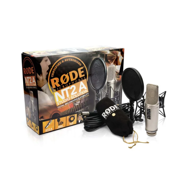 NT2A Studio Solution Kit je sada mikrofonu a příslušenství značky Rode. Kromě velkomembránového kondenzátorového mikrofonu NT2A obsahuje set odpružený držák SM6 s integrovaným pop filtrem, 3 m dlouhý XLR kabel, obal na mikrofon a instruktážní DVD producenta Johna Merchanta s radami pro co nejlepší záznam. NT2A je univerzální mikrofon určený pro široké spektrum aplikací – skvěle si poradí se zpěvem i akustickými nástroji, bicí soupravou nebo kytarovým aparátem. Flexibilitu použití rozšiřuje volitelná směrová charakteristika a útlumový pad eliminující příliš hlasité zdroje signálu.