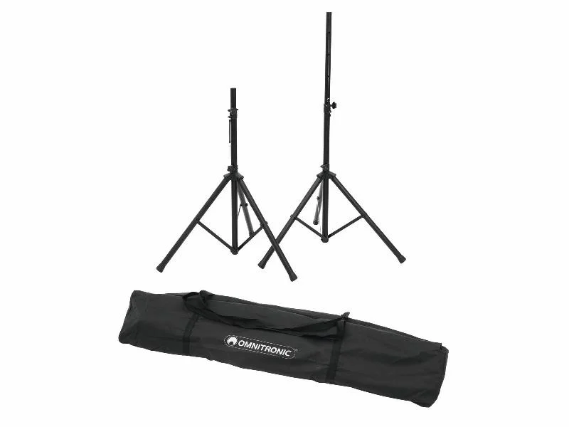 Stabilní ocelové reproduktorové stojany pro mobilní použití. Sada obsahuje dva stojany a pouzdro. Teleskopické tyče mají zajišťovací kolíky pro větší bezpečnost. Průměr trubky 35 mm. Max. zatížení 30 kg, nastavení výšky 100 – 185 cm. Odolné černé lakování proti poškrábání.