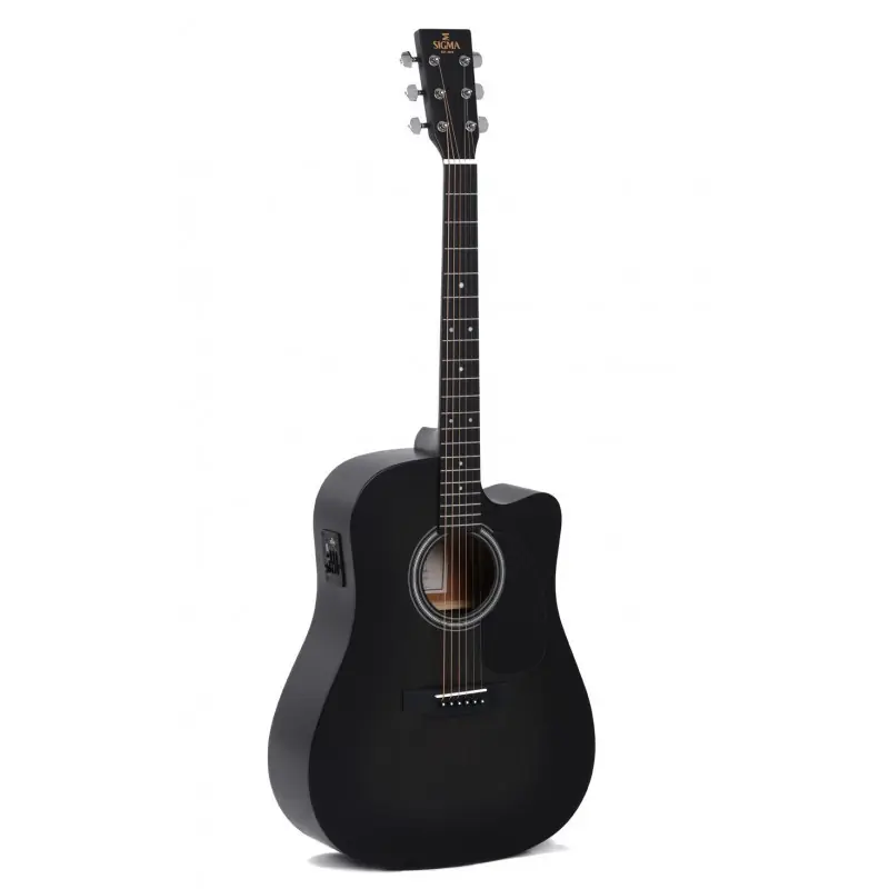 Sigma Guitars DMCE-BKB koncepčně vychází z toho nejlepšího možného vzoru, ze standardního Dreadnought modelu, masivní horní deska je z amerického smrku sitka, krk, luby a zadní deska jsou z mahagonu. Kost, jakožto ryze přírodní materiál zaručuje vynikající přenos výšek a pevnost tónu.