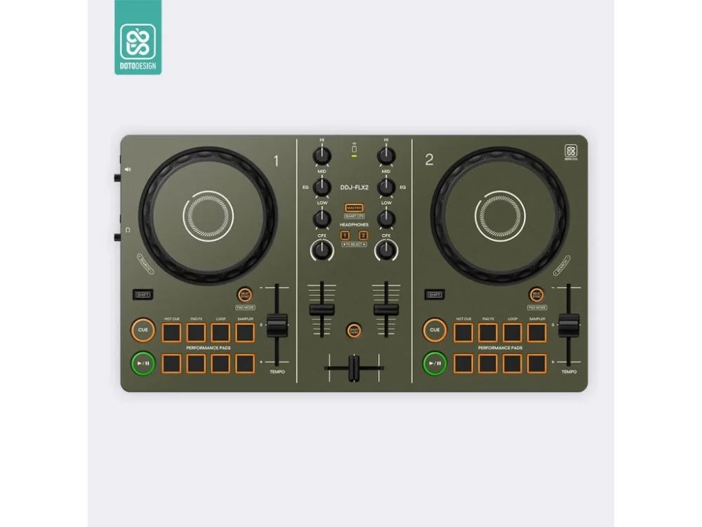 Nalepovací skin pro MIDI kontroler AlphaTheta DDJ-FLX2 v provedení FULL COLORS, barva army green (vojenská zelená).