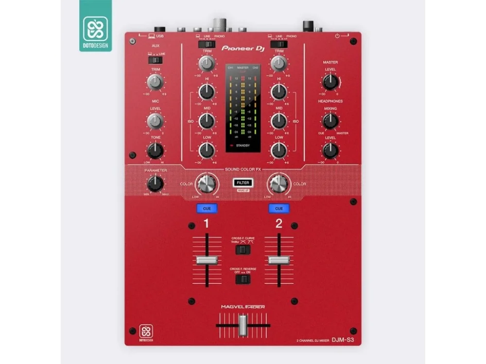 Nalepovací skin pro mixážní pult Pioneer DJM-S3 v provedení FULL COLORS, barva aurora red (červená).
