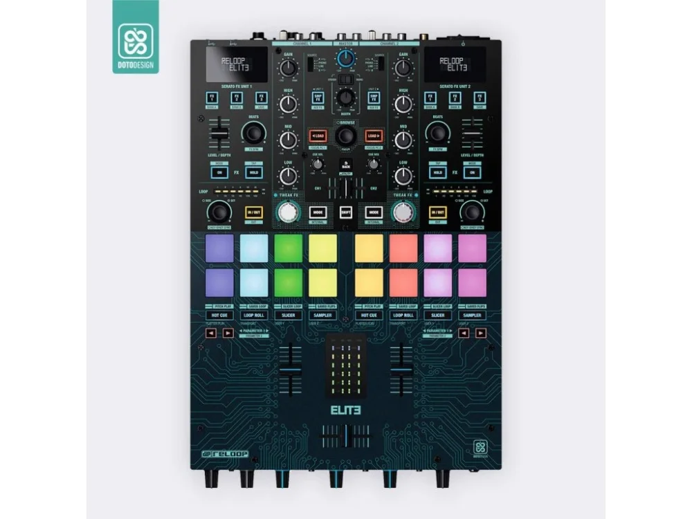 Nalepovací skin pro mixážní pult Reloop Elite v provedení TECH, inspirovaném světem elektroniky ve futuristickém stylu. Barva light blue (světle modrá).