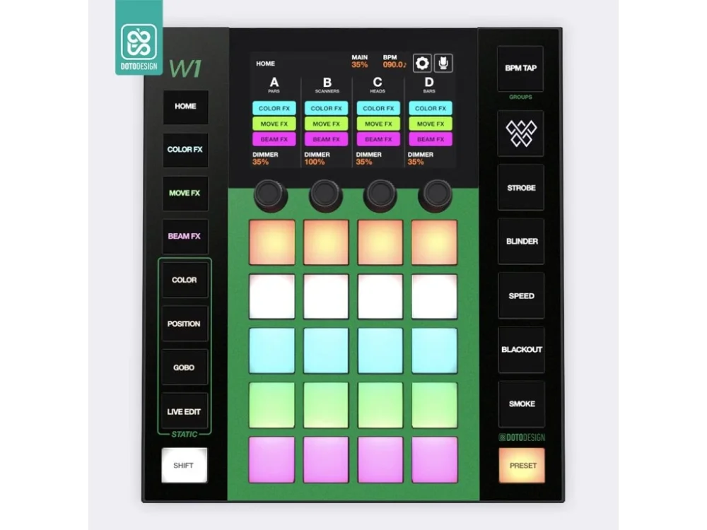Nalepovací skin pro DMX ovládací pult Wolfmix W1 (MK1 / MK2) v provedení COLORS DVS, barva green (zelená).