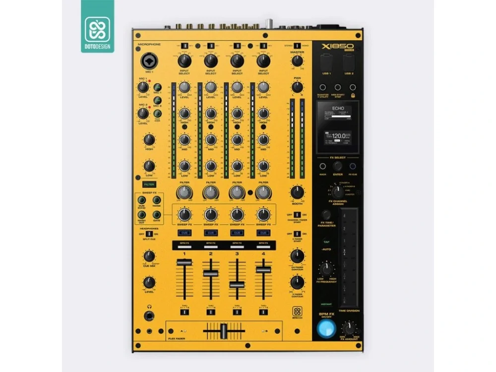 Nalepovací skin pro mixážní pult Denon DJ X1850 Prime v provedení FULL COLORS, barva dark yellow (tmavě žlutá).