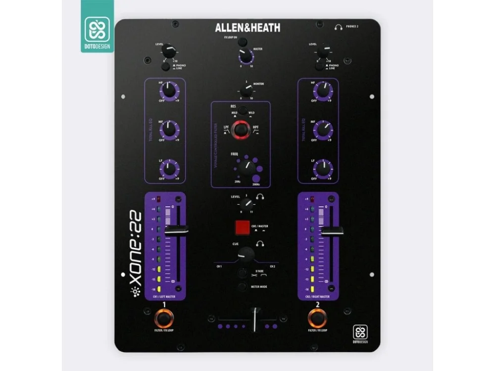 Nalepovací skin pro mixážní pult Allen & Heath XONE:22 v provedení COLORS, barva purple (fialová).
