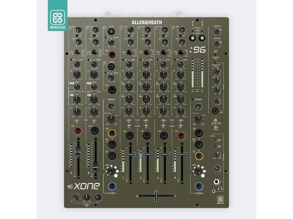 Nalepovací skin pro mixážní pult Allen & Heath XONE:96 v provedení FULL COLORS, barva army green (vojenská zelená).