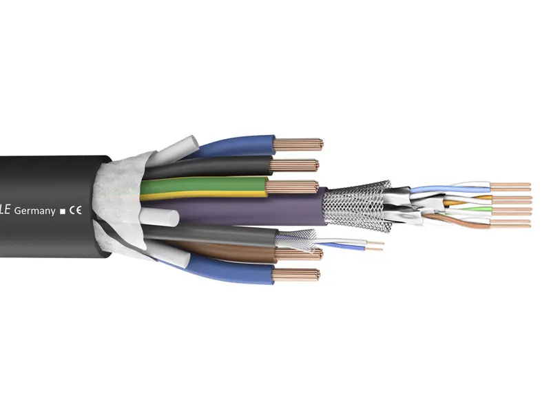 Hybridní kabel složený z 1x 5×2,5mm + 1x LAN CAT.7 + 1x DMX/AES/EBU 2×0,14mm, Kabel je vhodný pro mobilní aplikace i pevné instalace. Celkový průměr PVC 17,3mm. Celková hmotnost 390g.