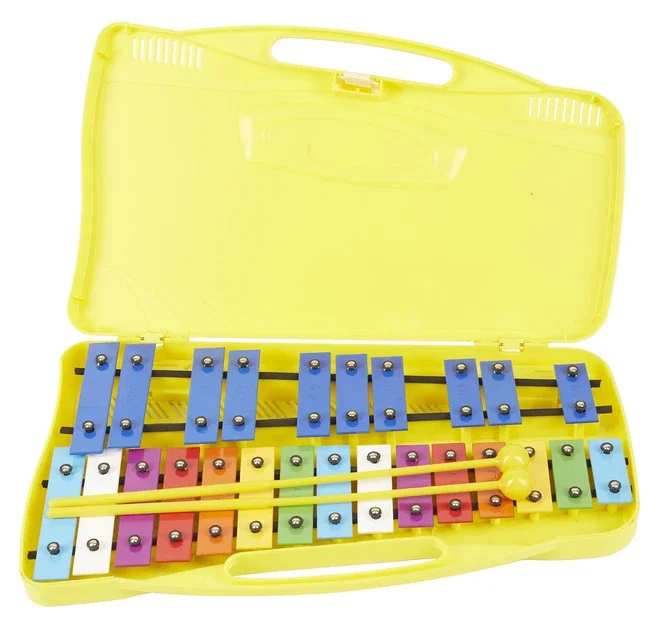 Dvouoktávová zvonkohra vhodná pro nejmenší a začínající muzikanty. Zvonkohra obsahuje dvě řady tónů, takže kromě celých můžete používat i zvýšené a zmenšené tóny jako na klavíru. Nástroj dále nabízí jasný, dynamický a barevný zvuk, který se neztratí ani v mnohačetném dětském sboru. Jednotlivé kameny jsou barevně rozlišeny pro snadnější orientaci při hře. Součástí balení je pár paliček a plastový kufřík pro snadný transport.