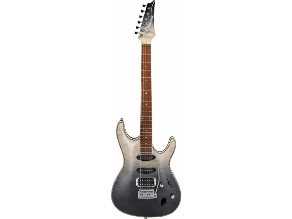 Elektrická kytara Ibanez SA-360 NQM v barvě BMG (Black Mirage Gradation) má tělo vyrobené ze dřeva stromu Okoume (druh mahagonu) a je opatřeno javorovou přední deskou s kresbou (řezem) quilted. Bílá lemovka těla má vložku z umělé perleti a krásně zvýrazňuje klenutý 3D tvar těla kytar řady SA. Javorový krk má hmatník ze stromu Jatoba a perleťové orientační značky. Dřevo stromu Okoume je poměrně lehké, ale přitom dostatečně husté. Kytary jsou tak herně komfortní, s plným zvukem a dlouhým sustainem. K perfektnímu hernímu pohodlí přispívá příjemně tenký a rychlý krk. Pro výběr zvuku, tedy konfigurace snímačů, se stará 5-ti polohový přepínač.