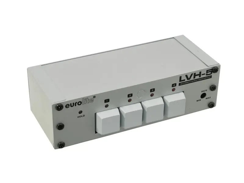 Automatický video přepínač 4:1. Pro přepínání video signálů až ze 4 zdrojů do jednoho výstupu. Automatické přepínání s indikací pomocí LED kontrolek. Doba přepínání je nastavitelná. Každý kanál vybaven tlačítkem pro zastavení sekvenčního režimu. 4 vstupy pomocí průchozího výstupu – BNC konektory. 1 výstup pomocí BNC výstupu. Každý vstup je vybaven paralelním výstupem pro průchod vstupního signálu. Kolektorové výstupy jsou vhodné pro ovládání dalších zařízení. Kompatibilní s NTCS a PAL systémem. Kompaktní kovové provedení. Napájení 12-24 V DC, připojení napájení pomocí svorkového terminálu.
