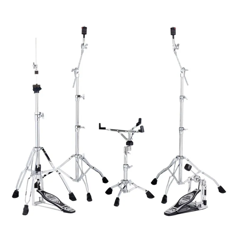 Kompletní sada praktického hardware pro bicí nástroje Tama z řady Stage master. Jednoduchý pedál má hladký chod a řadu funkcí převzatých ze špičkových pedálů Iron Cobra řady 900. Stojan na snare bez ozubeného kloubu umožňuje nastavit snare do libovolné pozice. Činelové stojany šibenice lze snadno změnit na rovné činelové stojany.