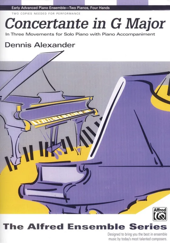 Concertante in G Major je třívětý klavírní koncert pro dva klavíry a čtyři ruce pro středně pokročilé klavíristy, který pro Vás napsal Dennis Alexander. Obtížnost skladeb 6+