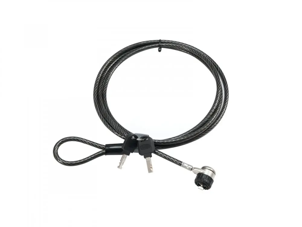 S tímto praktickým zámekem elektronických zařízení zabezpečíte všechna kompatibilní zařízení jako jsou notebooky, projektory, obrazovky a jiné. Odolný ocelový kabel s plastovým potahem je 180 cm dlouhý a lze ho snadno připevnit k jakémukoli statickému předmětu a ochránit tak elektroniku před krádeží. Dodáváno se setem dvou klíčů.