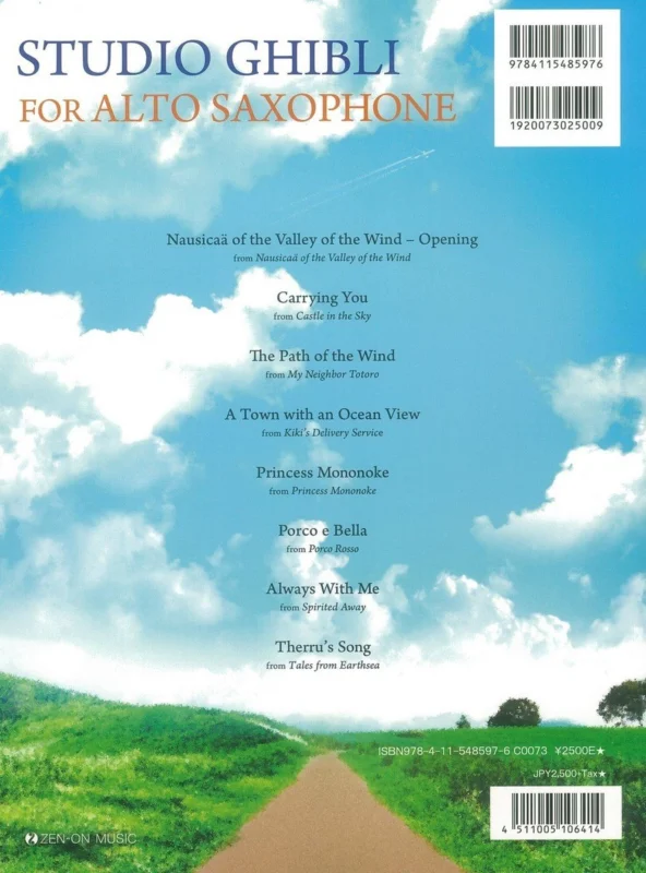 Sešit „Studio Ghibli“ Vám přináší kolekci osmi příjemných a oblíbených melodií a skladeb z animovaných filmů japonského filmového studia Ghibli. Skladby v sešitě jsou v aranžmá pro mírně pokročilé hráče na altový saxofon s klavírním doprovodem. Na přiloženém CD jsou všechny skladby nahrány jednou, a to samotný klavírní doprovod.