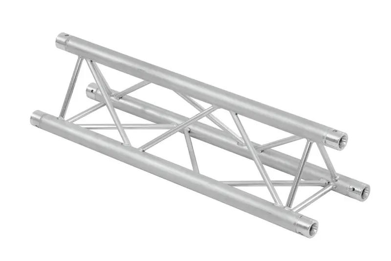 Trilock 6082-1000, rovný díl, 3-bodový konstrukční systém. Vysoce kvalitní hliníkové provedení, tři hlavní trubky s průměrem 50 mm a šířkou stěny 2 mm, příčky s průměrem 16 mm a šířkou stěny 2 mm. Jednoduchá instalace, nízká hmotnost. Pro přehlídky, instalace v obchodech, diskotéky a divadla.