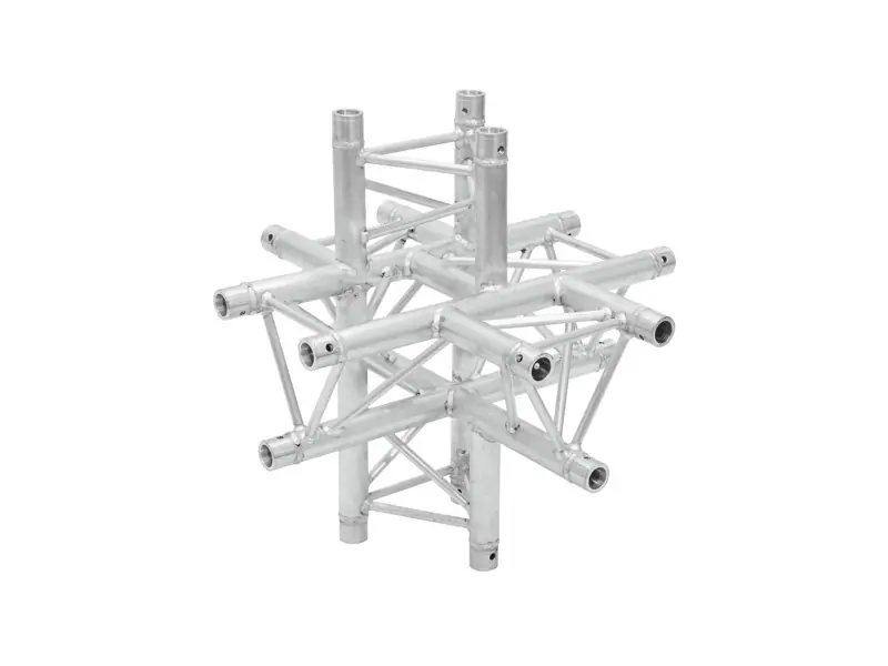 Trilock 6082AC-61, 6-koncový díl, 3-bodový konstrukční systém. Vysoce kvalitní hliníkové provedení, tři hlavní trubky s průměrem 50 mm a šířkou stěny 2 mm, příčky s průměrem 16 mm a šířkou stěny 2 mm. Jednoduchá instalace, nízká hmotnost. Pro přehlídky, instalace v obchodech, diskotéky a divadla.