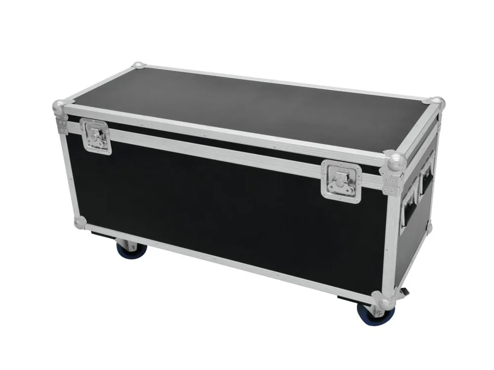 High-quality workmanship with 7 mm multiplex birch wood, dark brown laminated. Aluminum profile frames (30 mm) with rounded edges. Three-leg, medium-sized steel ball corners. 2 hinges. 2 butterfly locks. 4 case handles. 4 castors, 2 of which with locking brakes. Made in Europe.