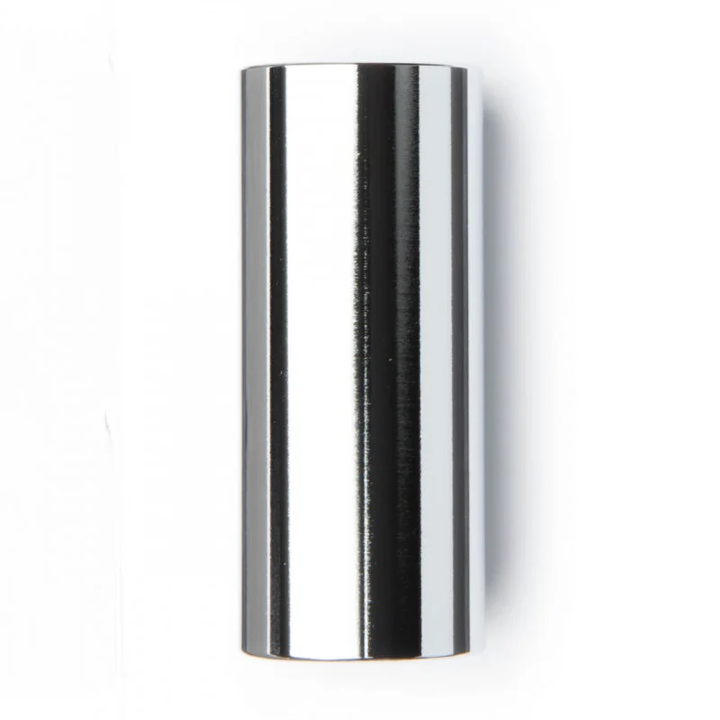 Dunlop chromovaný ocelový slide dlouhý, střední tloušťka stěny, střední velikost 19/22x60mm, poskytuje jasný, průrazný tón; na prstu je lehký, vyznačuje se střední tloušťkou stěny a středním průměrem.