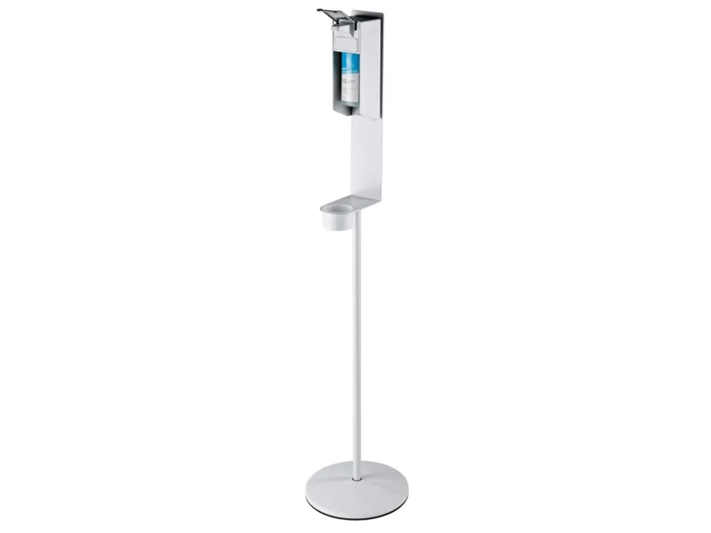 Robustní stojan na dezinfekci od K&M vhodný pro vnitřní i venkovní užití, je vyroben z pevné oceli a jeho údržba či transport jsou velmi jednoduché. Stojan je určen pro Euro dávkovače.