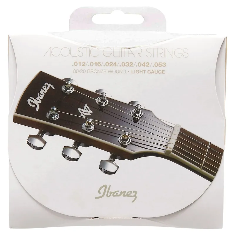 Sada kovových strun Ibanez pro akustickou kytaru. Bronzové válcové vinutí (round wound) z bronzové slitiny 80/20 na ocelovém jádru. Síla strun Light .012 / .016 / .024 / .032 / .042 / .053.