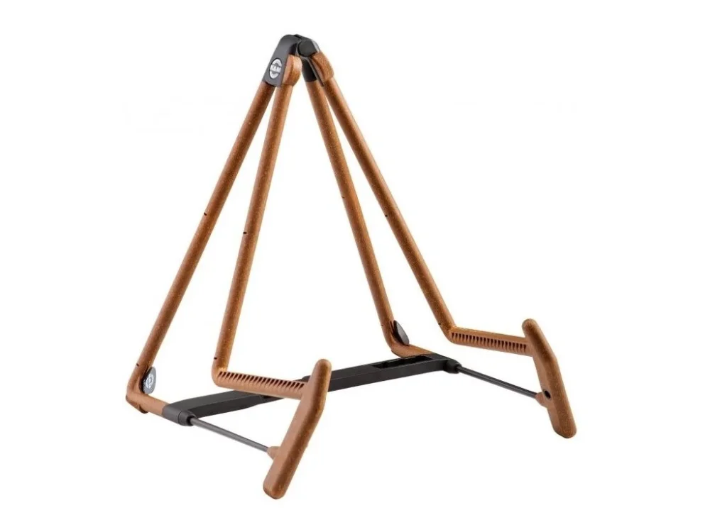 Ocelový stojan na akustickou kytaru »Heli 2«. Kovová skládací konstrukce, pogumovaná nosná ramena, integrovaný držák na trsátka. Nastavení stojanu pro kytary různých velikostí. Stojan je vhodný také pro bezhlavé kytary, violoncella a lesní rohy. Výška stojanu 330 mm. Součástí dodávky jsou také 2 trsátka. Barva korková.