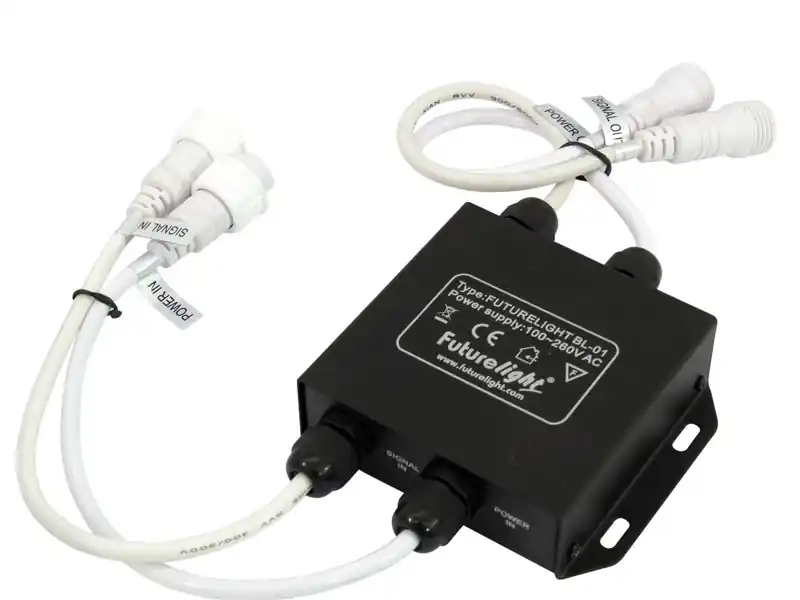 Zesilovač signálu pro LED efekty. Zesilovačposiluje signál k efektům a zároveň obnovujejejich napájení. Nutnost pro větší početefektů. U podlahových panelů PPP-60 jenutné zesilovač vkládat každý 25 – panel, uspotů PS-144 a CPS-144 je nutné zesilovačvkládat každých 16 spotů.