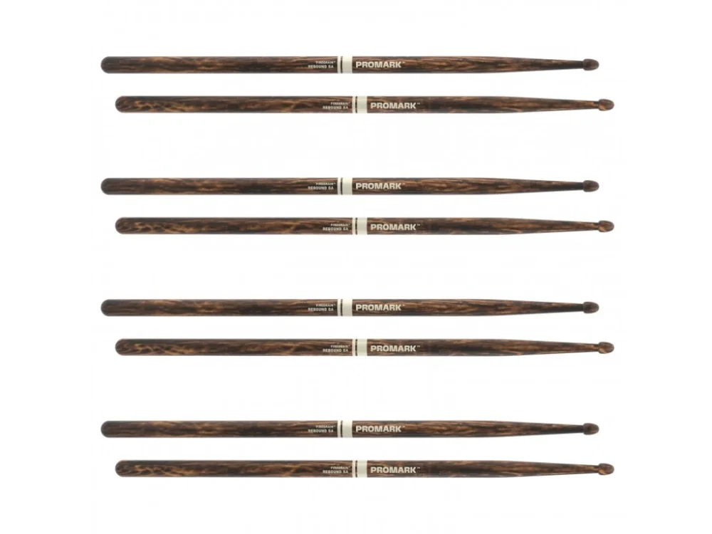 ProMark Rebound drumsticks feature a rear-weighted design for increased force out of the playing surface. Available in various diameters, lengths, finishes, and wood types including FireGrain and ActiveGrip.
