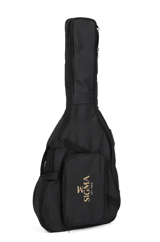 Kvalitní, silně polstrovaný obal pro 6ti i 12ti strunné akustické kytary tvaru dreadnought. Černý, s vyšívaným logem Sigma Guitars.
