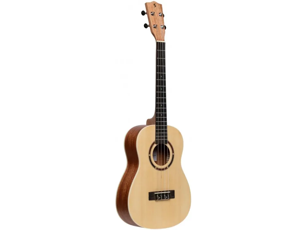 Barytonové ukulele. Vrchní deska smrk, spodní deska a luby sapele (druh exot. dřeviny), krk mahagon, hmatník a kobylka kompozitní ořech, otevřená ladicí mechanika s černými knoflíky. Lemování těla a tečky na hmatníku bílá výložka (ABS). Menzura 496 mm, celková délka 760 mm, struny Aquila. Barva přírodní. Dodáváno vč. nylonového povlaku.