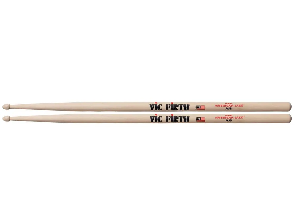 VIC FIRTH AJ3 – American Jazz, hickorové paličky paličky této série mají větši zúžení a jsou tak lehčí, průměr: 13,7 mm, délka: 406 mm